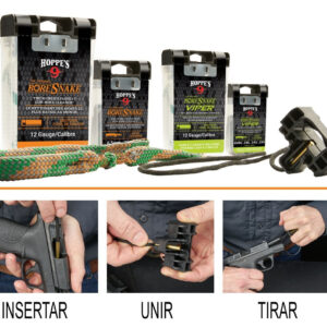 Esta patentada maravilla de una sola pieza, limpia, cepilla y absorbe. Todo en uno. Nunca algo tan simple ha causado tanto impacto en la industria del tiro. El revolucionario Boresnake es el limpiador de cañones más rápido del mundo. Elimina las molestias e inconvenientes de la limpieza de pistolas, rifles y escopetas, con una o dos pasadas el cañón del arma quedará reluciente. Boresnake es ideal para el campo o limpiezas rápidas. Un peso de cobre en el extremo de la cuerda está marcado con el calibre para el que se ha adaptado.