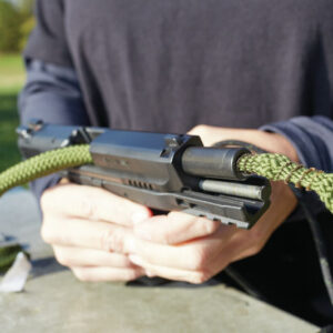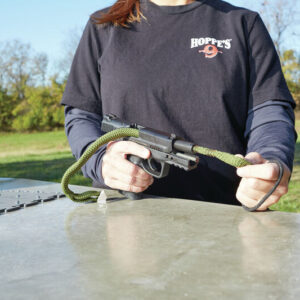 Una pasada afloja las partículas grandes, frota el residuo restante con un cepillo de bronce y luego limpia todo con un área de limpieza 160 veces más grande que un parche estándar. Simplemente agregue el Limpiador y aceite No.9 de Hoppe’s o Boresnake CLP en la parte delantera y trasera del Boresnake y páselo por el orificio para una limpieza rápida.