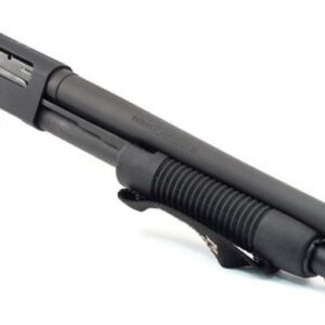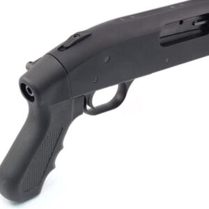 La escopeta Mossberg 590 Cruiser del calibre 12 está equipada con una empuñadura de pistola para una longitud total baja y facilidad de uso en escenarios de combate. La empuñadura se le puede añadir una culata táctica de forma fácil.