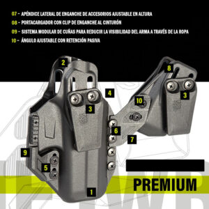 – Clip de cinturón estilo J de 1.5 «ajustable en altura e inclinación.