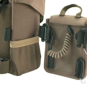 La funda compacta simple se conecta fácilmente a la mochila de binoculares Vault en cualquier lado en una configuración de apertura hacia adelante o lateral usando tres clips de plástico en forma de U.
