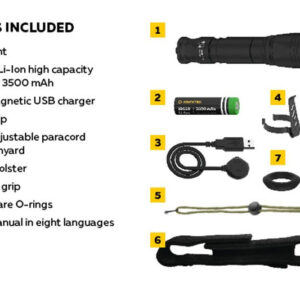 - Protección total contra el agua, la suciedad y el polvo de acuerdo con el estándar IP68: la linterna continúa funcionando incluso a 25 metros de profundidad hasta 5 horas.