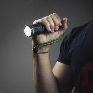 - Cordón de muñeca de tamaño ajustable hecho de paracord resistente y mosquetón de acero para una rápida extracción e instalación en la linterna.