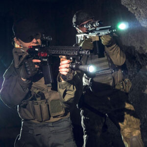 - Dos tipos de operación: caza y táctica. Operación táctica para acceder rápidamente al modo de brillo máximo y al modo estroboscópico.