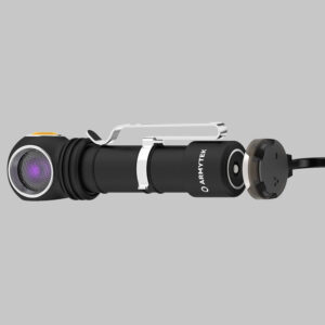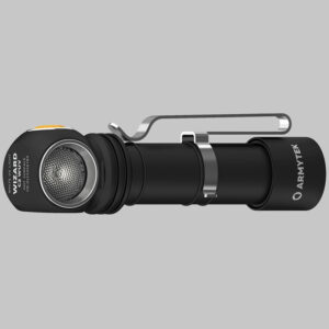 La versatilidad de la linterna Wizard C2 WUV está determinada por varias opciones de fijación: en la cabeza con un cómodo soporte, en cualquier elemento de la ropa con un clip de acero, en cualquier superficie metálica gracias al imán en la tapa trasera. El modelo es compatible con el soporte original ABM-01 para instalar en una bicicleta y el soporte AHM-02 para cascos de construcción.