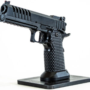 La DS9 Hybrid es una pistola estilo 1911 de cuerpo ancho y doble pila. Esta pistola ha sido creada para funcionar con miras metálicas o miras réflex. Construida, ajustado y afinada a mano. Increíblemente precisa y fiable, con garantía de por vida.
