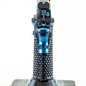 Configuración de la MPA DS9 Hybrid Black & Blue: Marco y corredera de nitruro negro. Cañón de nitruro negro. Ambi-Safety de PVD azul, tope deslizante, liberación magnética, varilla guía y zapata de gatillo anodizada de aluminio negro. Empuñadura de aluminio anodizado negro (textura estándar o agresiva)