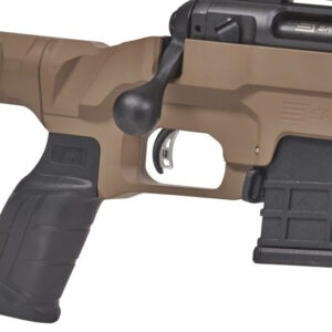 La culata incluye la empuñadura de pistola de estilo AR y el chasis es compatible con los cargadores de patrón AICS. La liberación del cargador es mediante una pestaña tras el brocal de acceso ambidiestro. El guardamanos es compatible M-LOK, con 32 ranuras para facilitar el montaje de accesorios como bípodes, láseres y topes para la mano de apoyo. M-LOK se está convirtiendo poco a poco, en el estándar de facto para la sujeción de accesorios en el ámbito militar, por su robustez frente a KeyMod. Decir, que tiene una cantonera con un nivel medio de mullido, proporcionando una buena amortiguación del retroceso. Además, se sirve de un cargador de polímero que tiene una capacidad para 10 cartuchos.