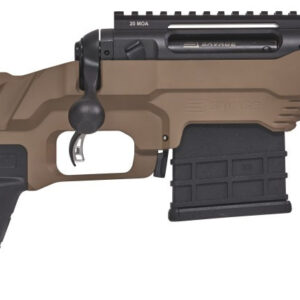 La culata incluye la empuñadura de pistola de estilo AR y el chasis es compatible con los cargadores de patrón AICS. La liberación del cargador es mediante una pestaña tras el brocal de acceso ambidiestro. El guardamanos es compatible M-LOK, con 32 ranuras para facilitar el montaje de accesorios como bípodes, láseres y topes para la mano de apoyo. M-LOK se está convirtiendo poco a poco, en el estándar de facto para la sujeción de accesorios en el ámbito militar, por su robustez frente a KeyMod. Decir, que tiene una cantonera con un nivel medio de mullido, proporcionando una buena amortiguación del retroceso. Además, se sirve de un cargador de polímero que tiene una capacidad para 10 cartuchos.