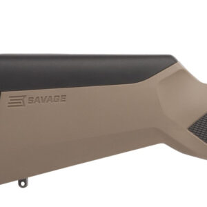 Con respecto a la culata, esta lógicamente es de polímero con cama de aluminio interna AccuStock, en un color táctico “desert tan”. Dada la importancia de las miras metálicas en el concepto del diseño, posee una carrillera fácil y rápidamente ajustable, que permite al tirador establecer la altura de culata correcta para cualquier sistema de miras que se utilice, metálicas o visor. Con el rifle se adjunta un conjunto de espaciadores, para ajustar la longitud de la culata a la morfología del tirador. Estas dos últimas características, conforman el denominado sistema AccuFit de SAVAGE.